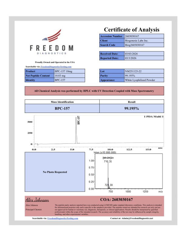 Biogenesis Peptides is a chemical supplier. Biogenesis Peptides is not a compounding pharmacy or chemical compounding facility as defined under 503A of the Federal Food, Drug, and Cosmetic act. Biogenesis Peptides is not an outsourcing facility as defined under 503B of the Federal Food, Drug, and Cosmetic act.